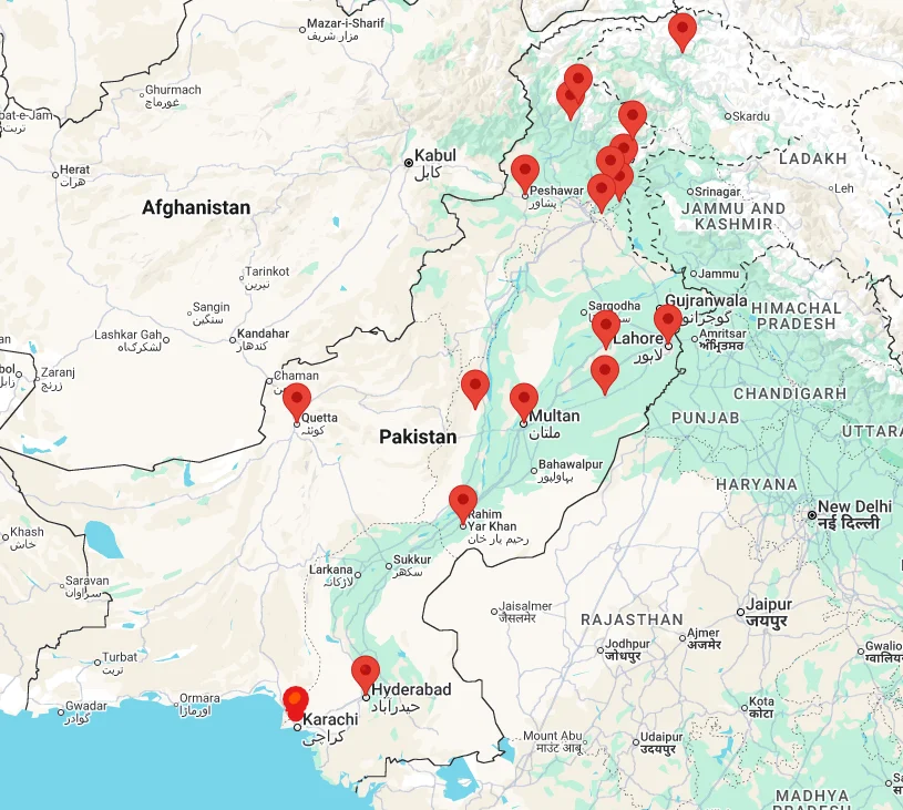 Lahore, Islamabad, Karachi, Multan, Faisalabad